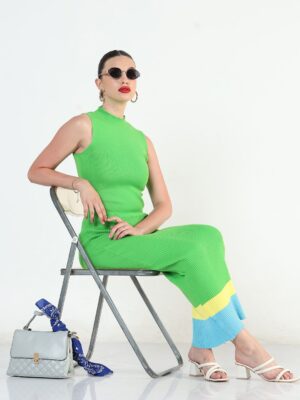 Colourblocked High Neck Ribbed Bodycon Maxi Dress