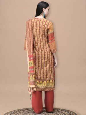 Women Liva Mustard Mughal Print Kurta Comfort Pant Dupatta