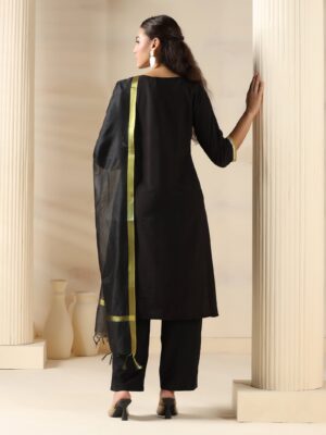 Women Liva Black Solid Kurta Comfort Pant Dupatta