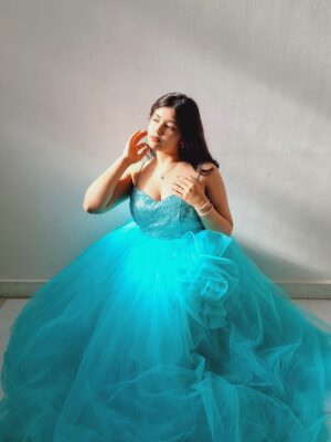 Women Shoulder Straps Floral Net Applique Maxi Dress
