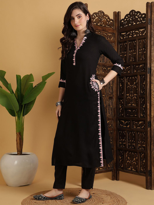 Be the first to review “Embroidered Calf Length V-Neck Three-Quarter Sleeve Straight Kurta” Cancel reply