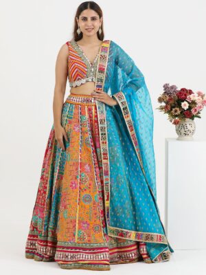 Embroidered Lehenga With Kurta & Dupatta