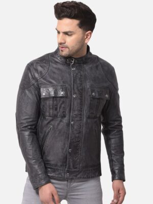 Men Black Leather Water Resistant Longline Bomber with Patchwork Jacket