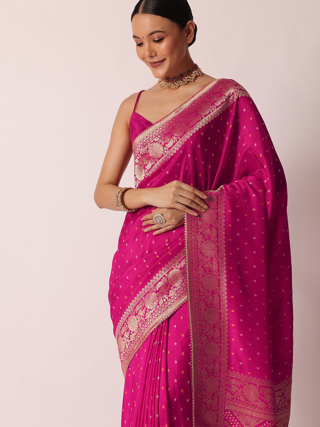 - Pink & gold-tone saree