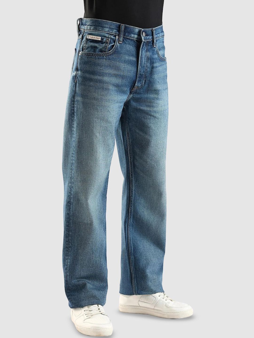 - Medium shade, light fade blue jeans