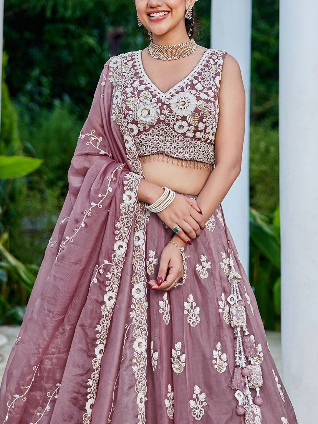 - Gorgeous and Beautiful Ready to Wear Lehenga choli dupatta set from the house of panchhi. This lehenga choli is made from Organza fabric. The lehenga choli has a beautiful contemporary Sequinse design and can be worn to festive occasions or a casual occasion where you want to flaunt your style with this outfit.