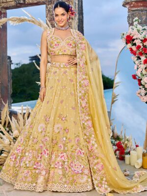 Embroidered Sequinned Net Semi Stitched Lehenga & Unstitched Blouse With Dupatta