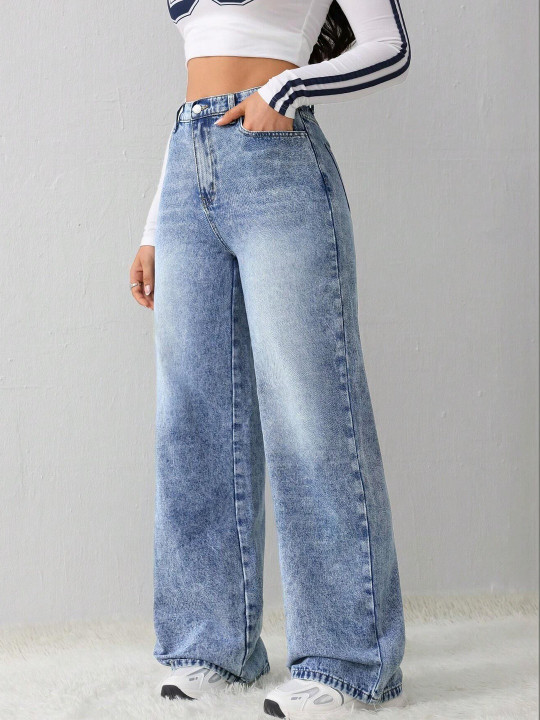Fabric:Denim; Cold Wash: Machine Wash Your Denim Flared Fit Baggy Jeans In Cold Water To Preserve The Color And Fabric Integrity. Use A Mild Detergent And A Gentle Cycle. Avoid Clear Of Hot Water As It Can Lead To Color Fading And Shrinking.